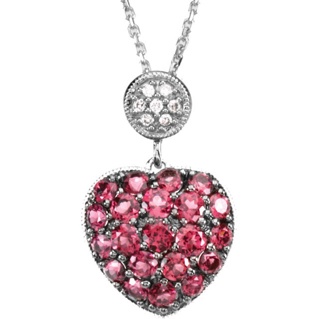 Pendant > Heart > Garnet & Diamond > Brazilian > Genuine